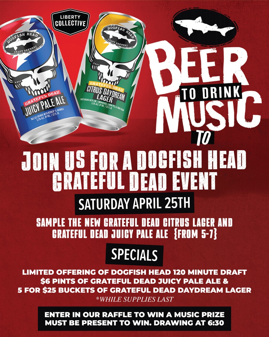 Join us at Liberty Collective for a Dogfish Head Grateful Dead Event on Saturday, April 25th!