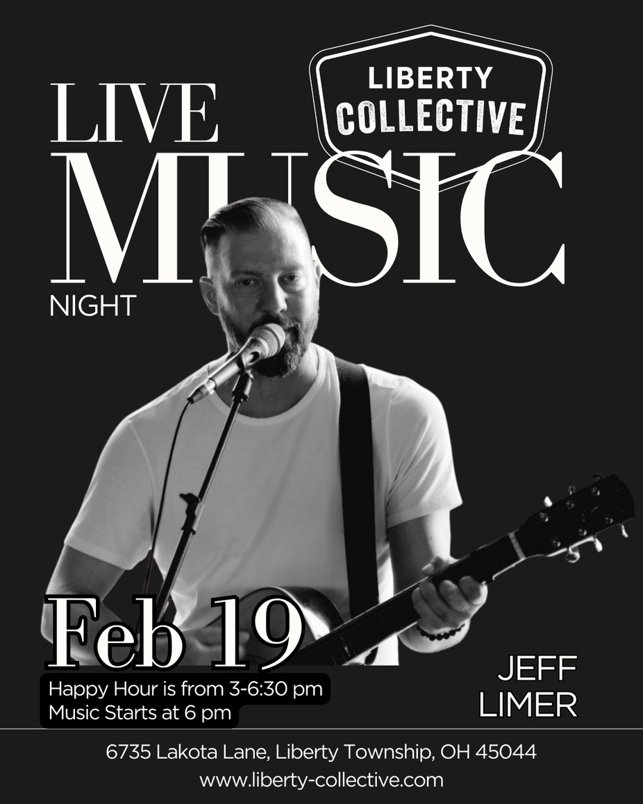 Live Music Night at Liberty Collective! Join us for a performance by Jeff Limer, starting at 6 PM. Come early and enjoy Happy Hour from 3–6:30 PM before the music kicks off!