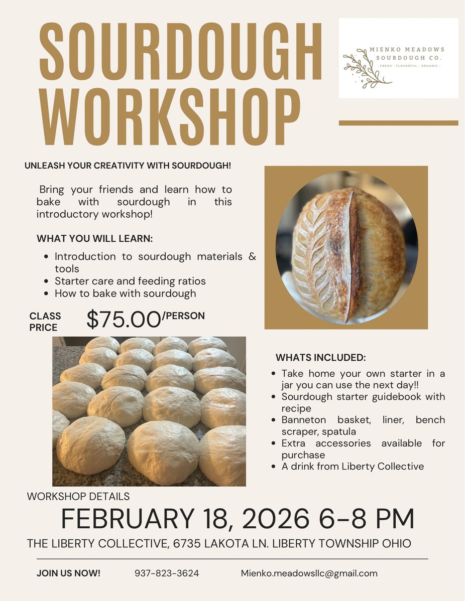 Book Now https://tables.toasttab.com/liberty-collective-6735-lakota-lane/experience/sourdough-workshop